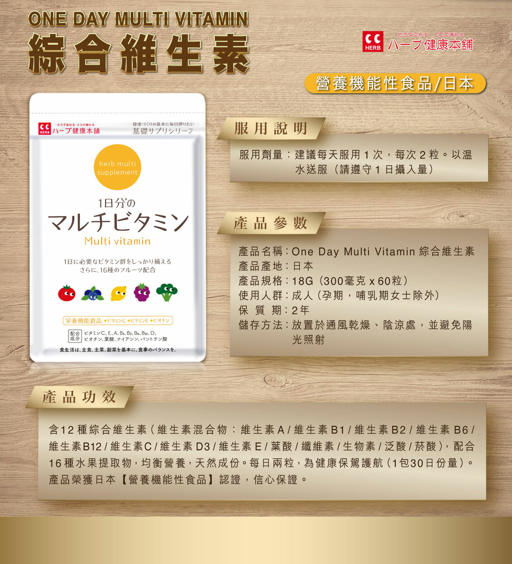 產品名稱: HERB 綜合維生素 ( 包括1天所需)